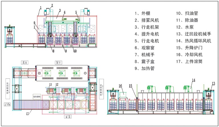 主要用于汽車(chē)散熱器零部件的除油清洗、烘干工藝。